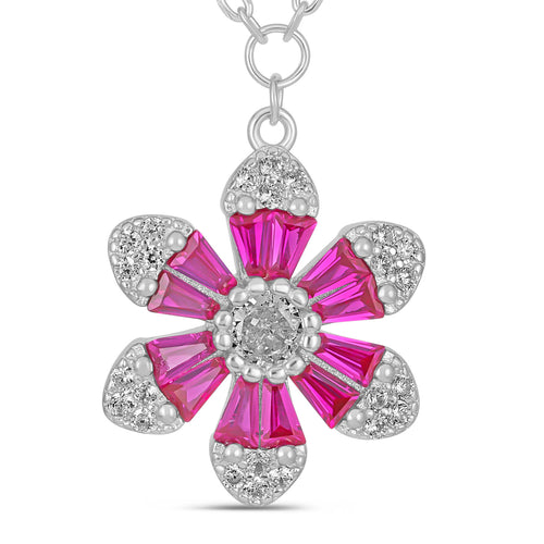 Sterling Silver Rose Gold Plated Heart Pendant Necklace, Multicolor Cubic Zirconia -